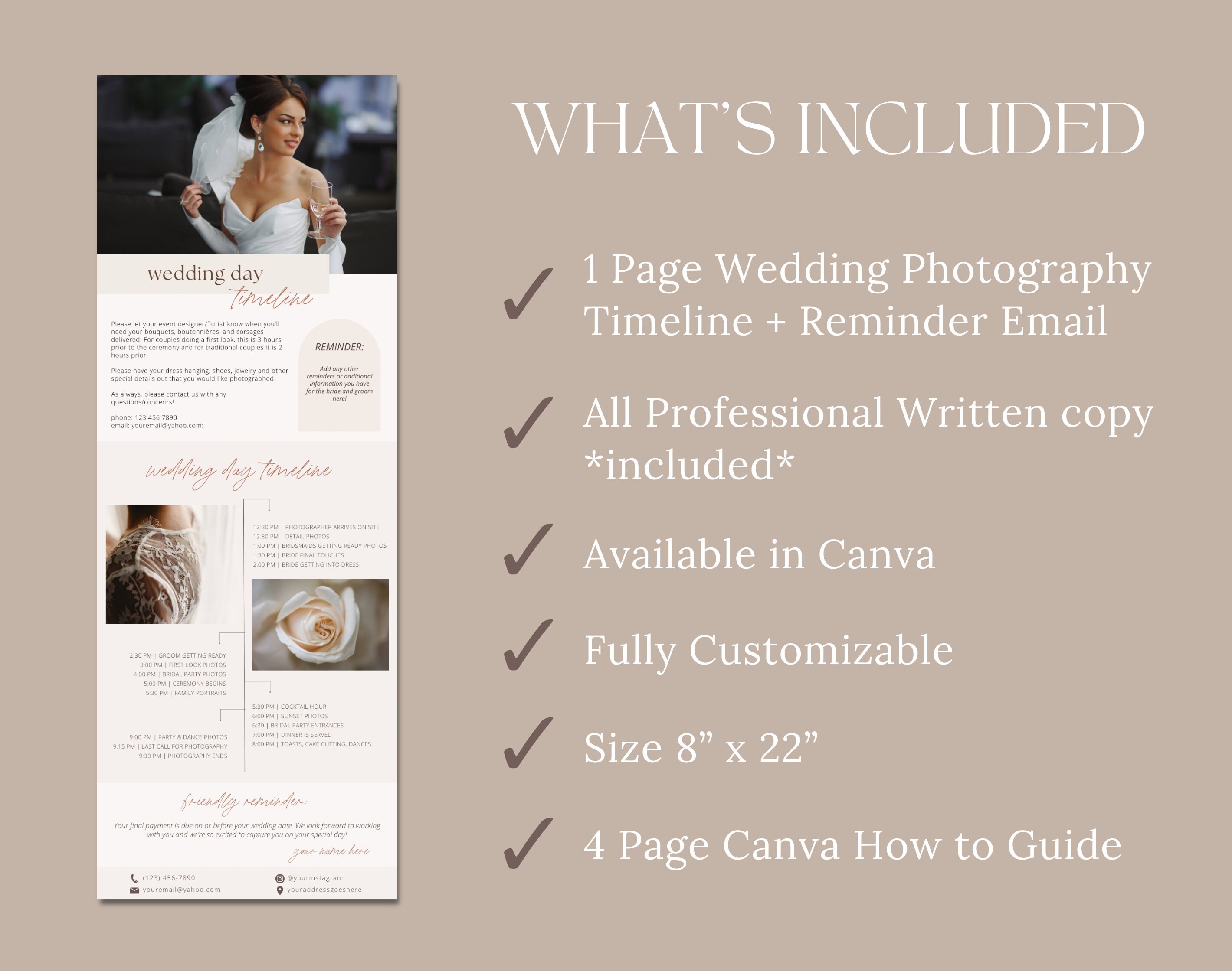 Wedding Photographer Timeline Template for Canva Wedding Etsy