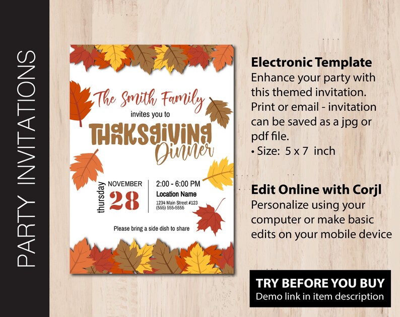 Editable THANKSGIVING Dinner Invitation Friendsgiving Potluck