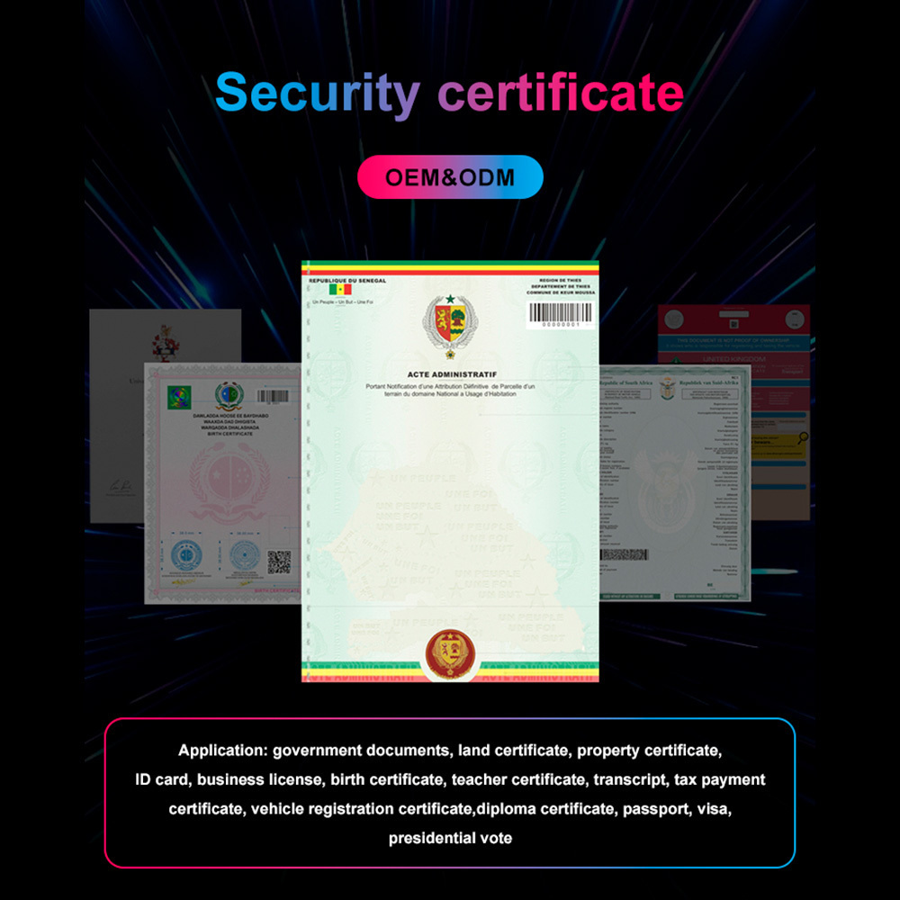 Printing Authenticity A4 Security UV Fiber Paper Embossed Certificate