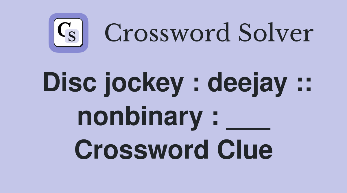 Disc jockey : deejay :: nonbinary : Crossword Clue Answers