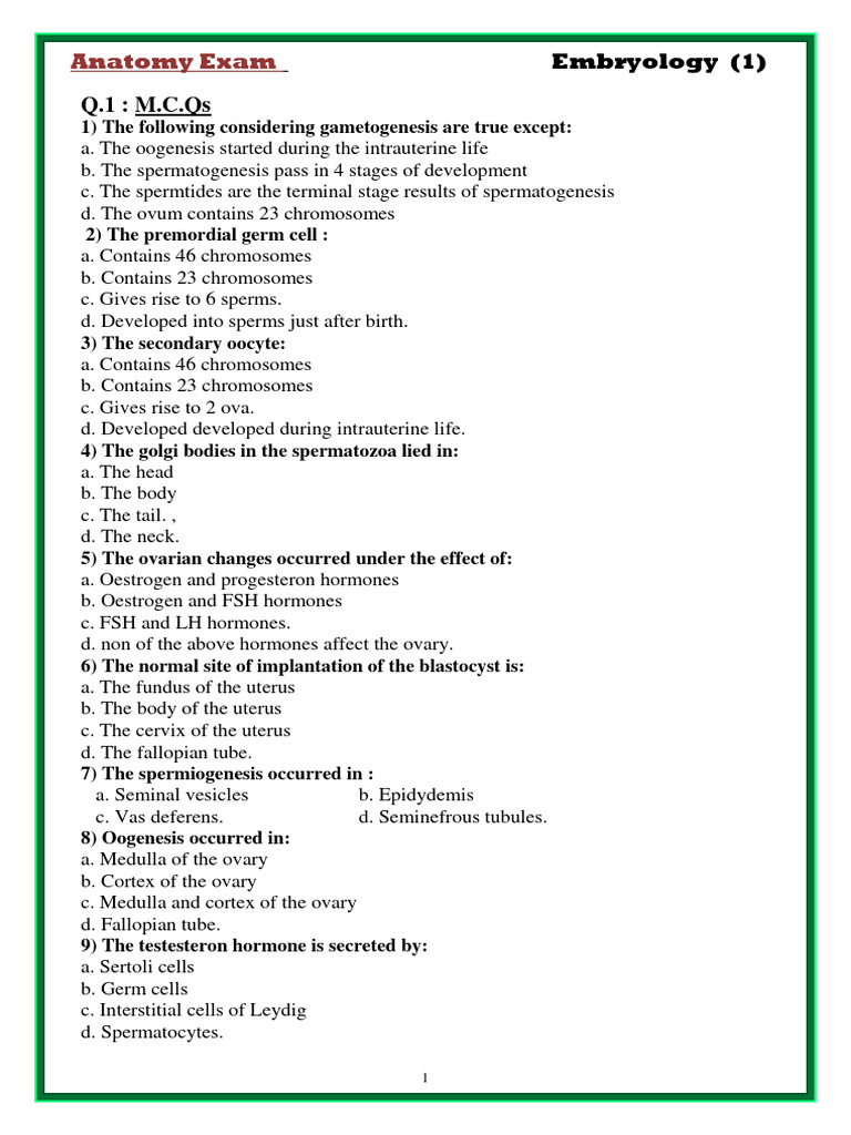 anatomy exam embryology with answers PDF Menstrual Cycle Meiosis