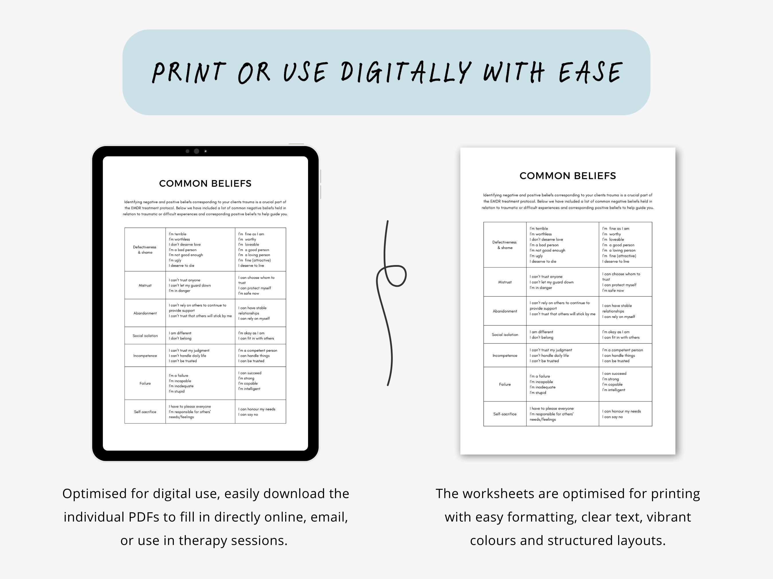 EMDR Bundle EMDR therapist positive cognition EMDR worksheets trauma