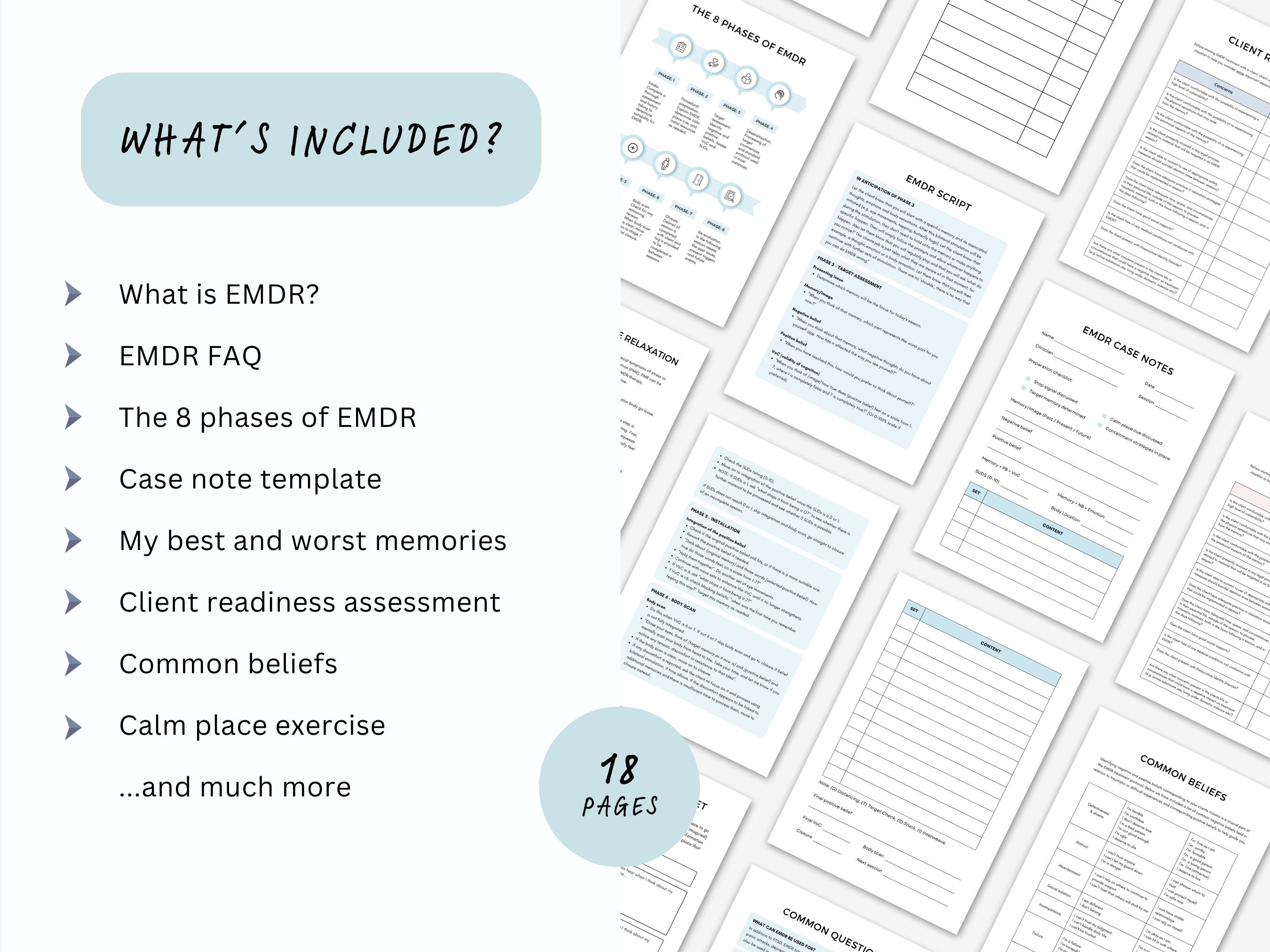 EMDR Therapy Worksheets and Case Notes Template Bundle for Therapist or