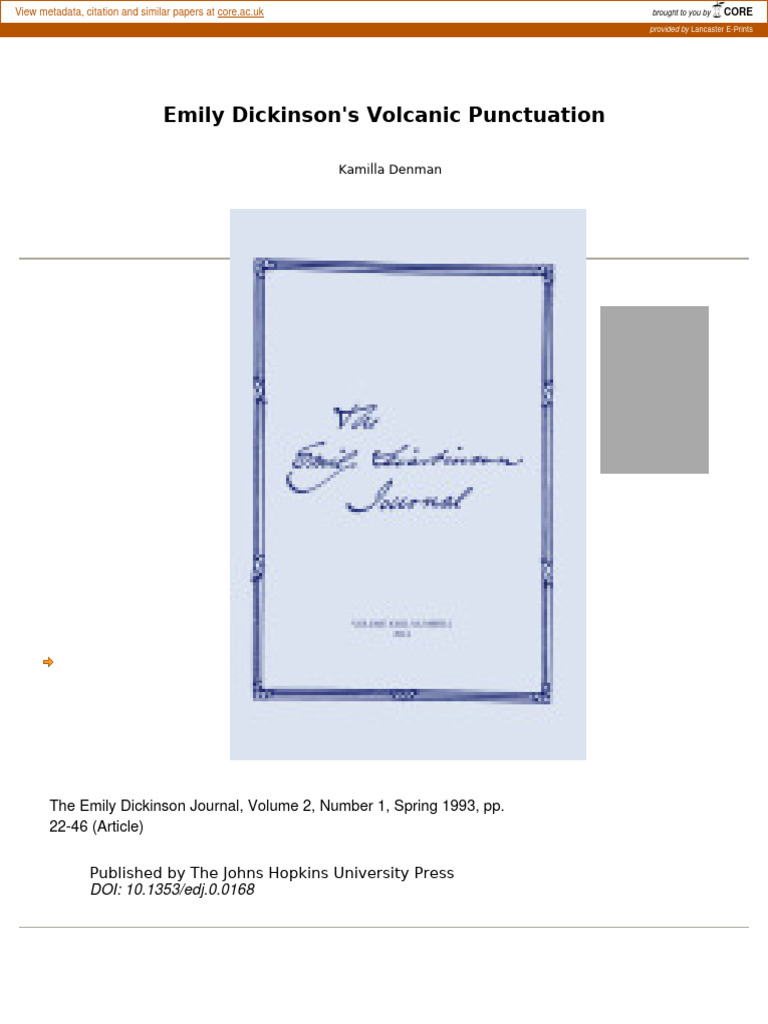 Emily Dickinson #39 s Volcanic Punctuation PDF Emily Dickinson Poetry