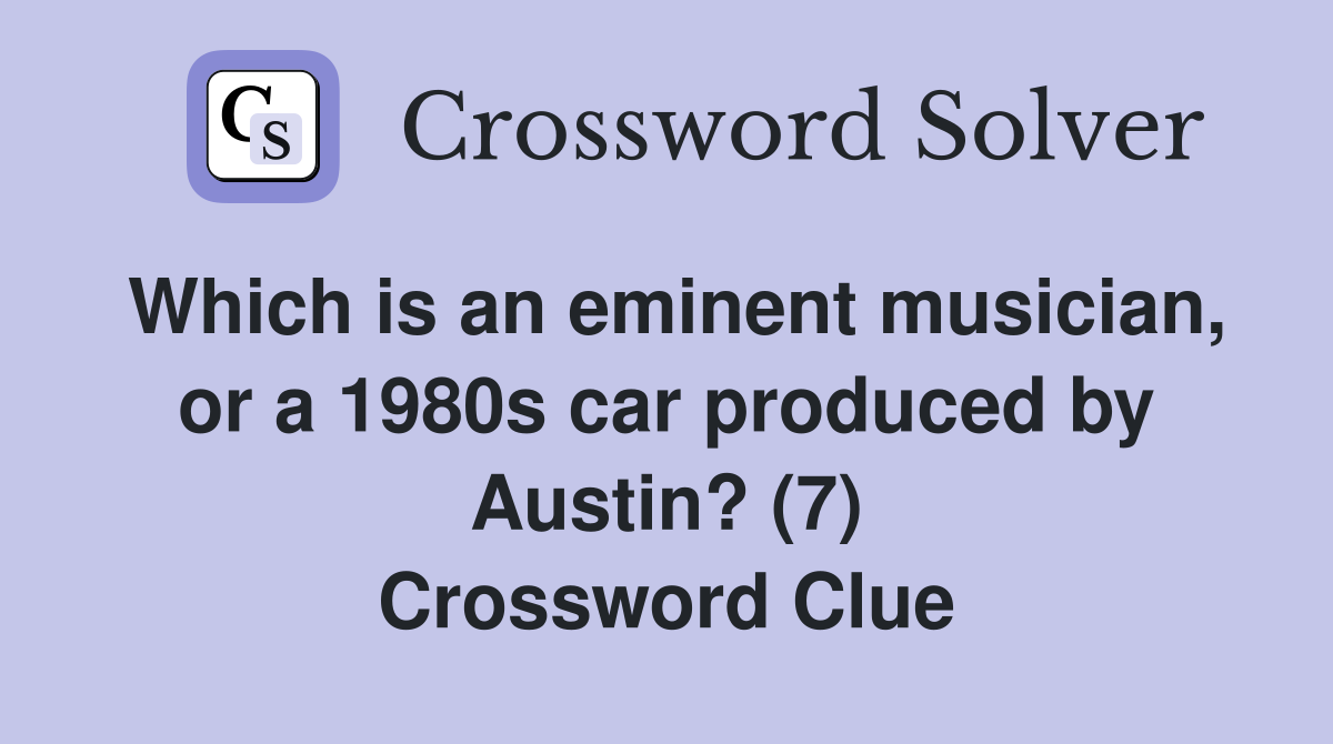 Which is an eminent musician or a 1980s car produced by Austin? (7