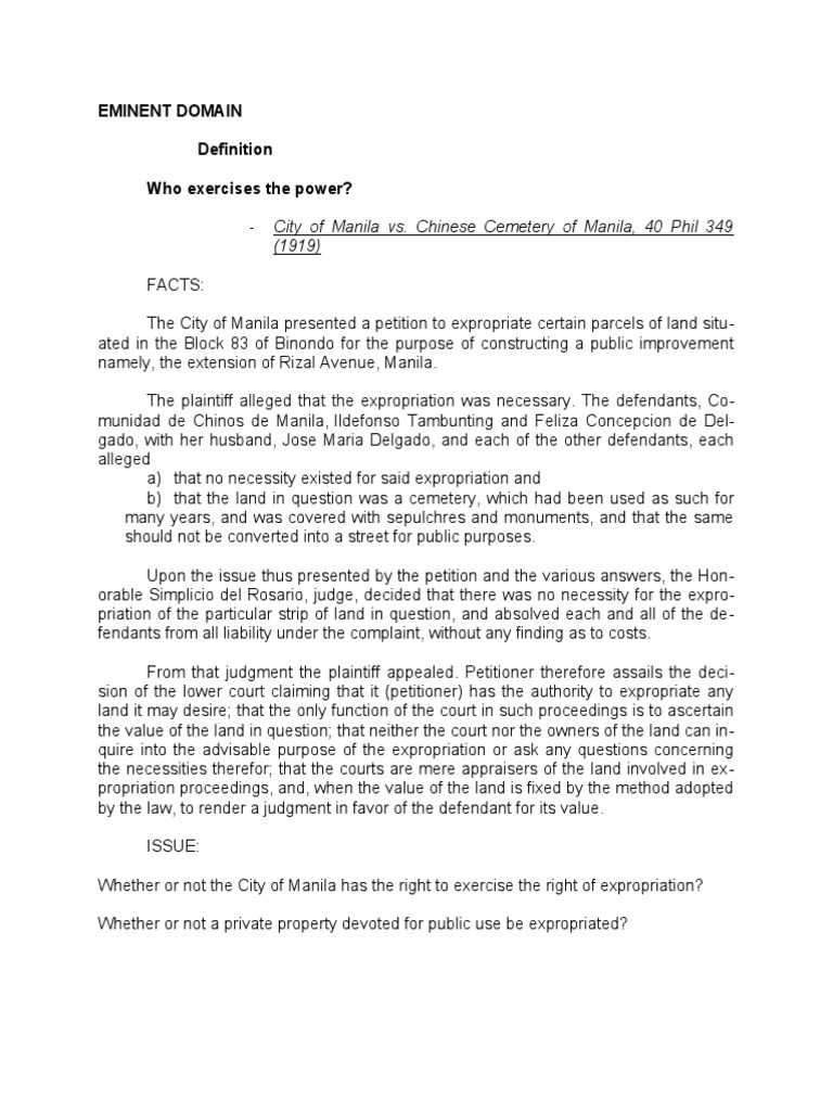 EMINENT DOMAIN Cases PDF Eminent Domain Civil Law (Common Law)