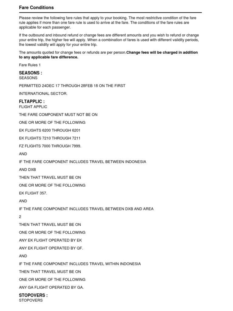 Emirates Fare Conditions PDF Fare Fee