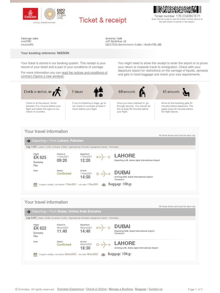 Emirates Ticket 1 PDF Aviation Transport
