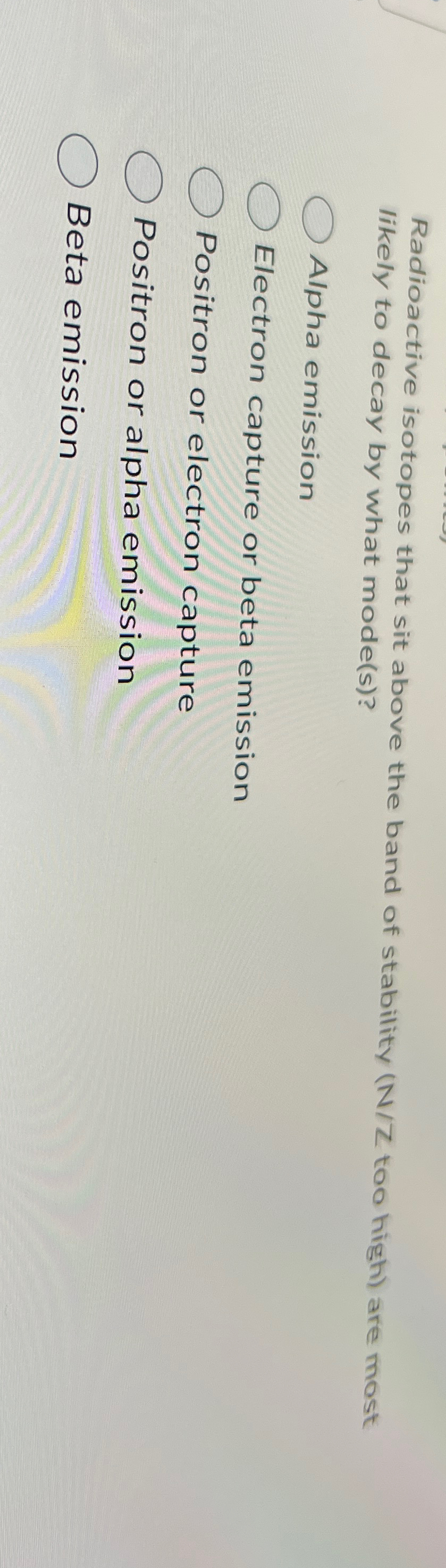 Solved Radioactive isotopes that sit above the band of Chegg com