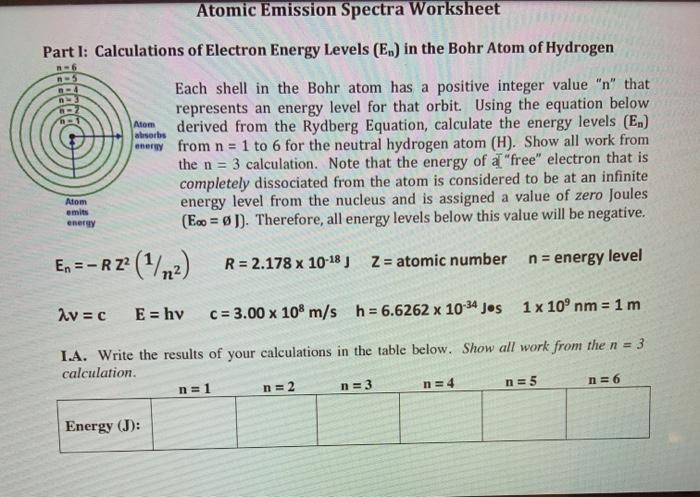 Solved Atomic Emission Spectra Worksheet Part I: Chegg com