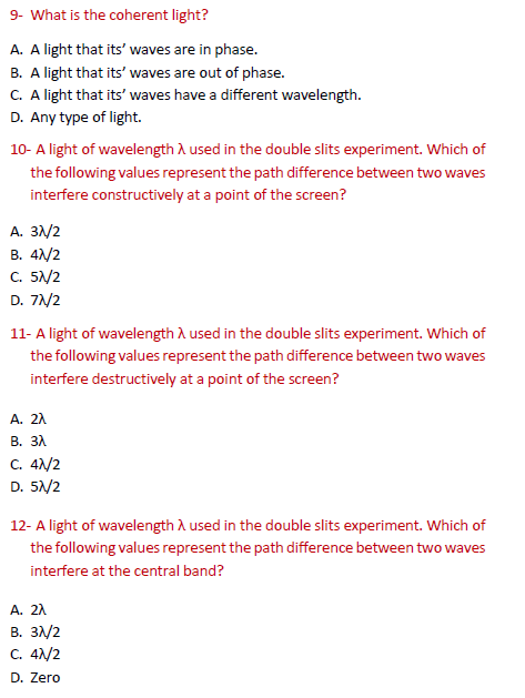 Solved 9 What is the coherent light? A A light that its Chegg com
