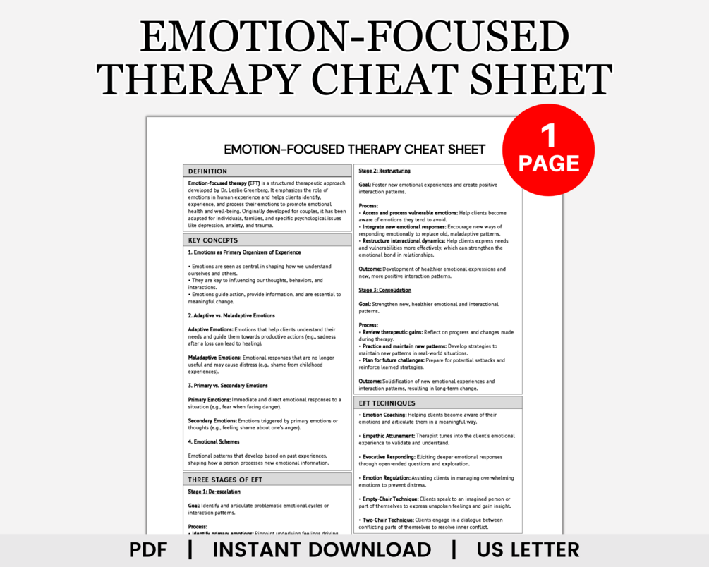 Emotion Focused Individual Therapy EFIT for Therapist EFT Cheat Sheets