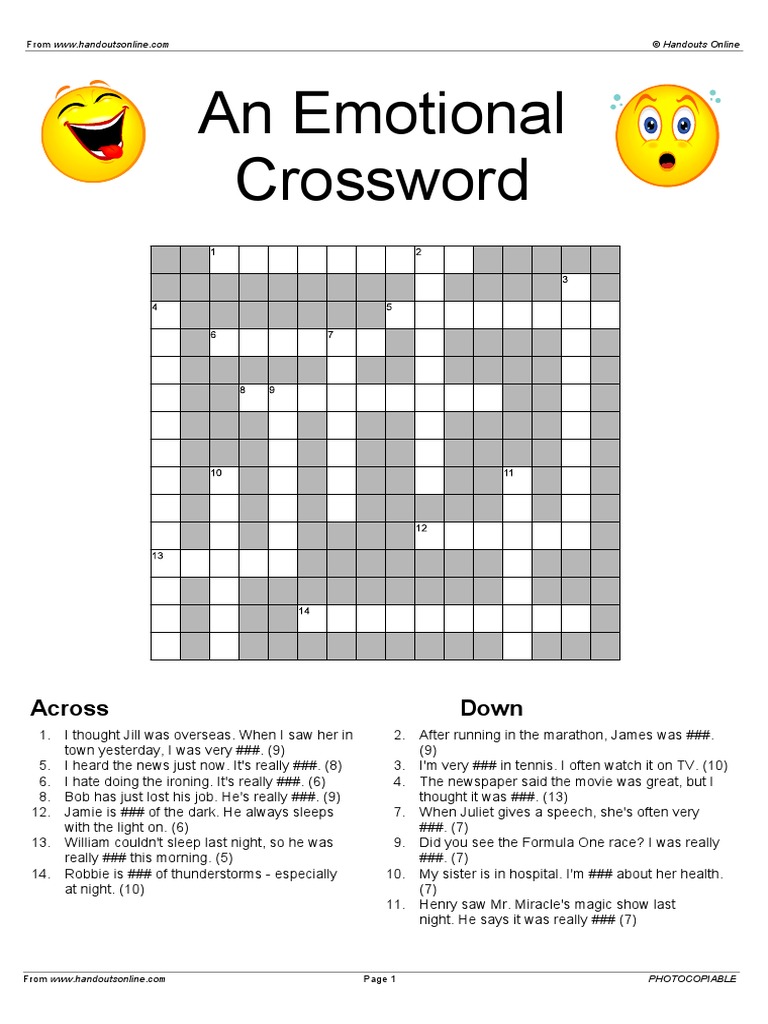 Free Printable Emotions Crossword Puzzle Crossword puzzle Crossword