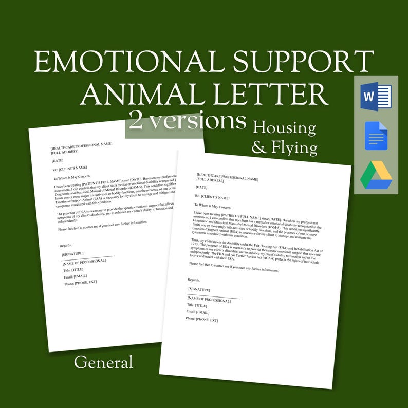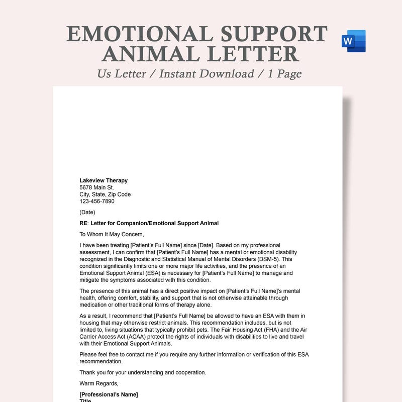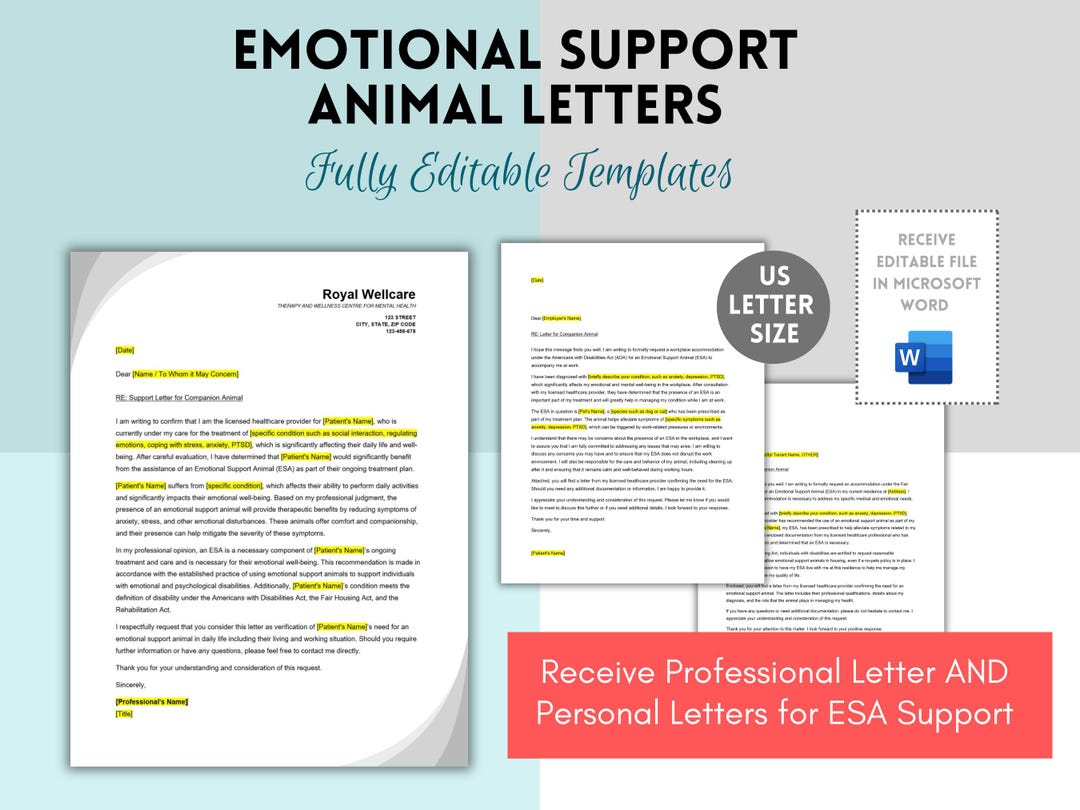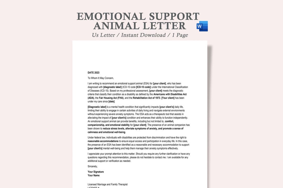 ESA Letter Template: Editable Emotional Support Animal Documentation Etsy