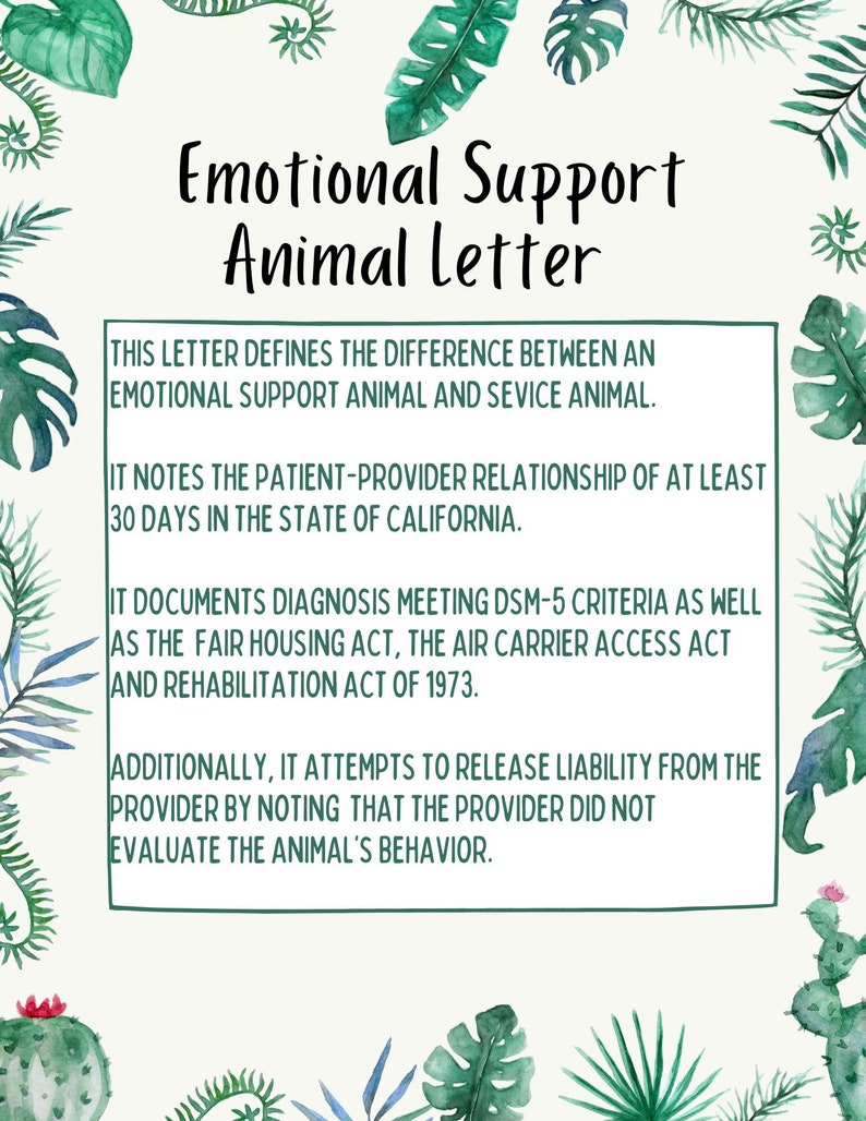 Emotional Support Animal Letter service Animal Letter emotional Support