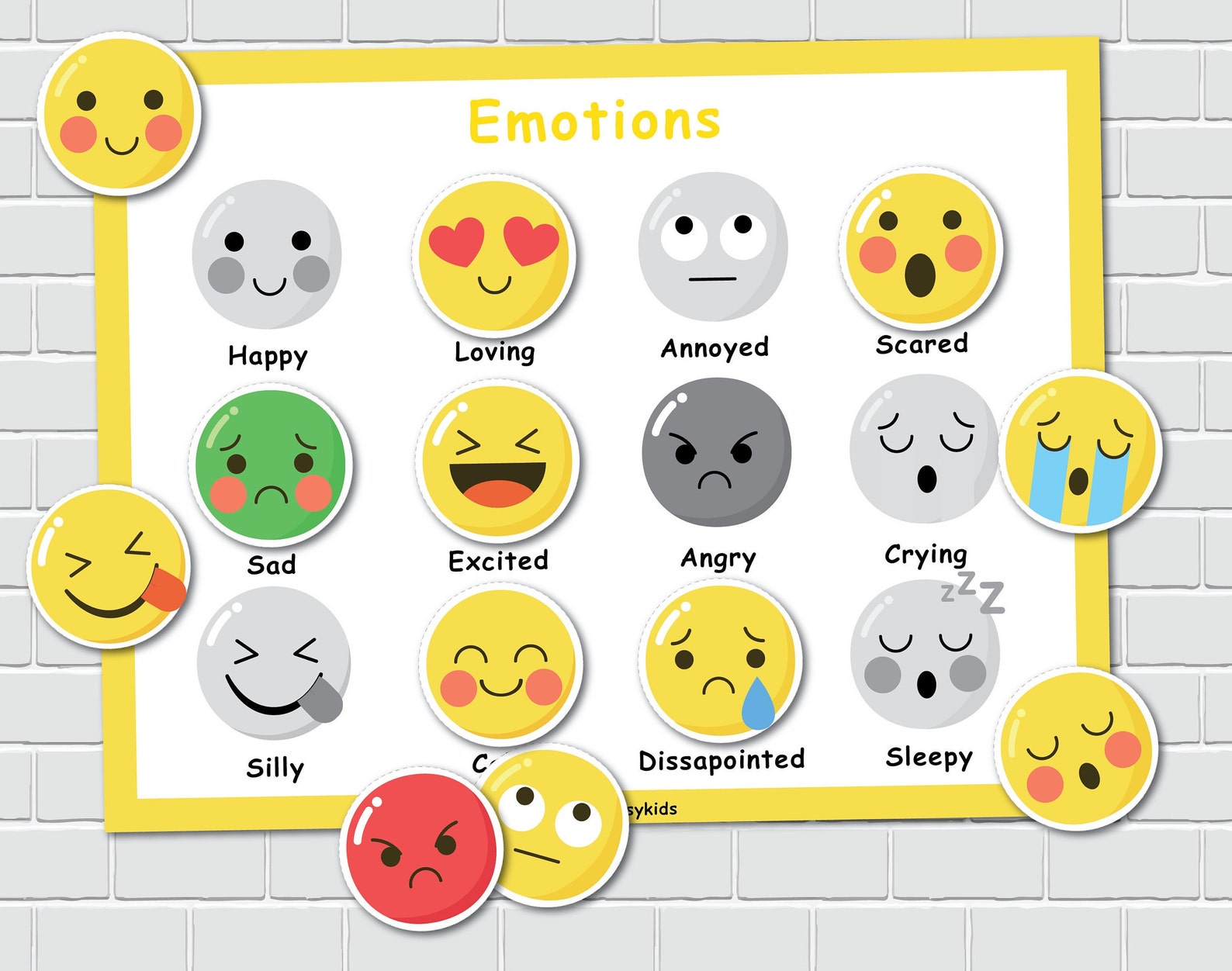 Kids Emotions Feelings Chart Early Learning Wall Art for Children