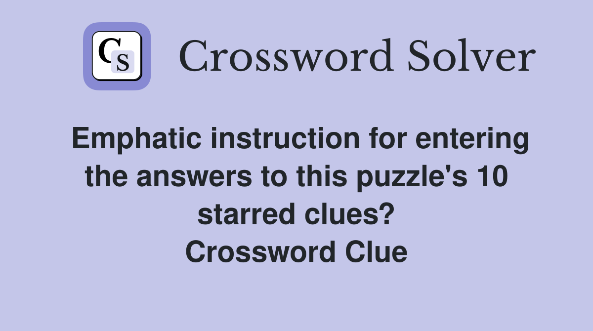 Emphatic instruction for entering the answers to this puzzle s 10