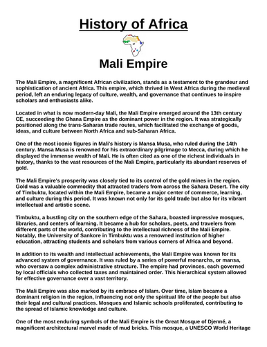 Mali Empire Article Questions Assignment (Ancient Africa
