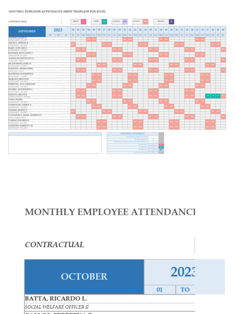 IC Monthly Employee Attendance Sheet 11664 PDF