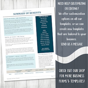 Employee Benefits Info Template Employee Benefits Flyer Page Etsy