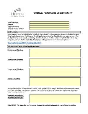 Fillable Online lf heifer Employee Performance Objectives Form Fax