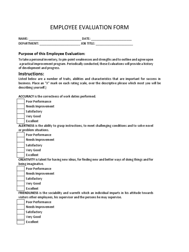 Employee Performance Evaluation Form: 30 Fabulous Templates to Inspire