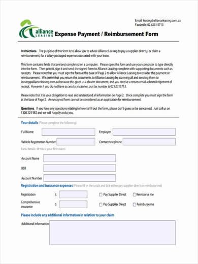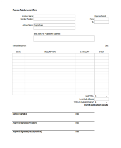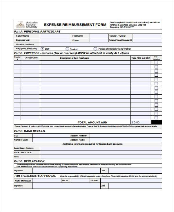 FREE 11 Sample Expense Reimbursement Forms in PDF MS Excel MS Word