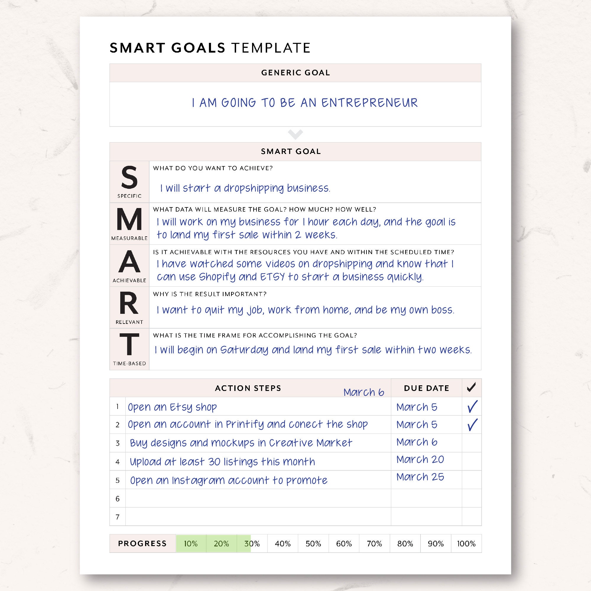 Goal Setting Worksheet SMART Goals Template Printable Etsy