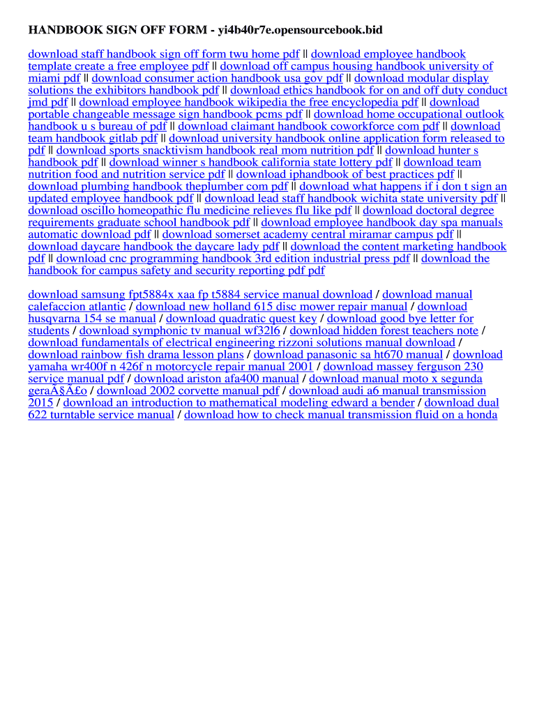 Fillable Online yi4b40r7e opensourcebook HANDBOOK SIGN OFF FORM