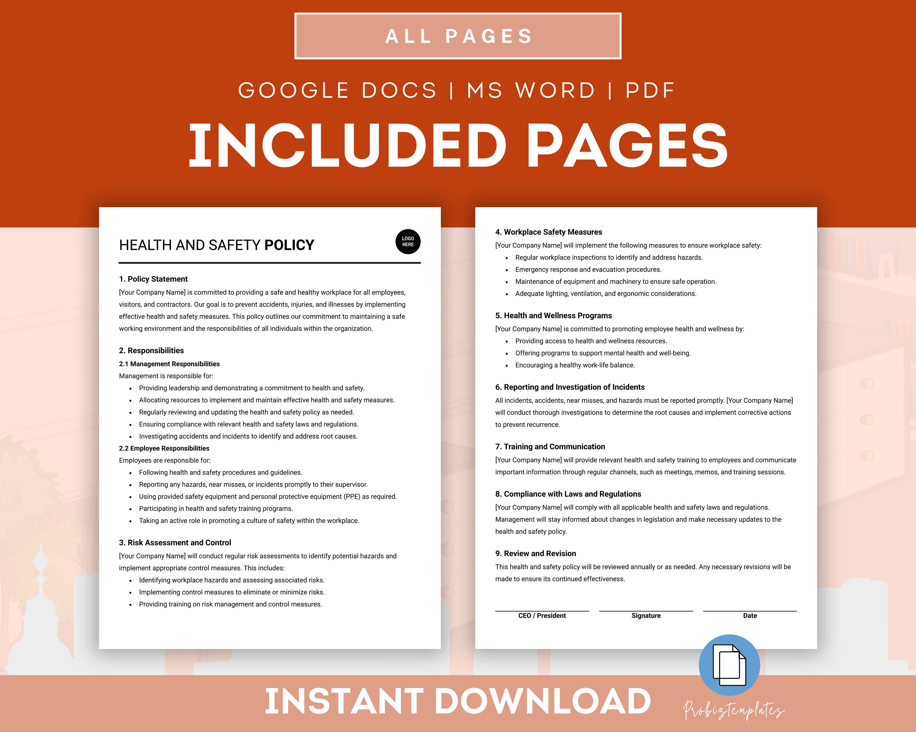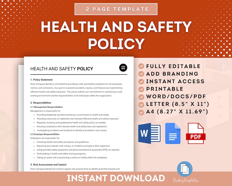 Health and Safety Policy Outline HR Template in Word PDF Google Docs