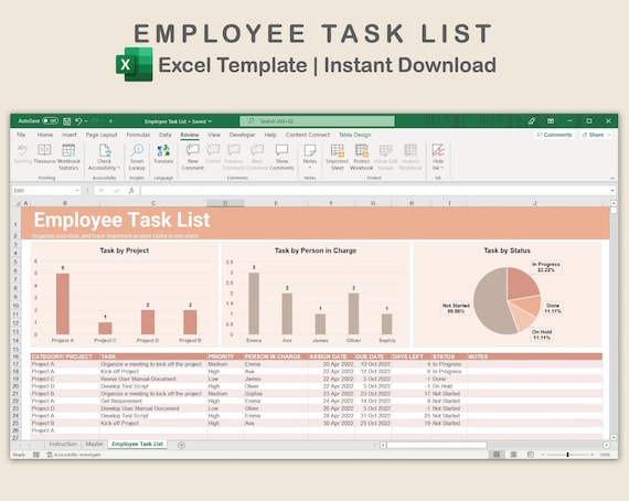 Employee Task List for Excel Task List for Work Small Etsy Canada