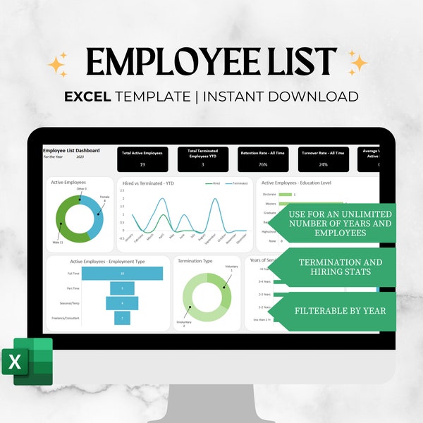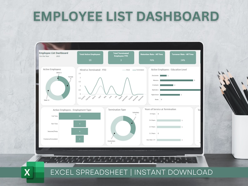 Employee List Dashboard Spreadsheet Employee Performance Etsy