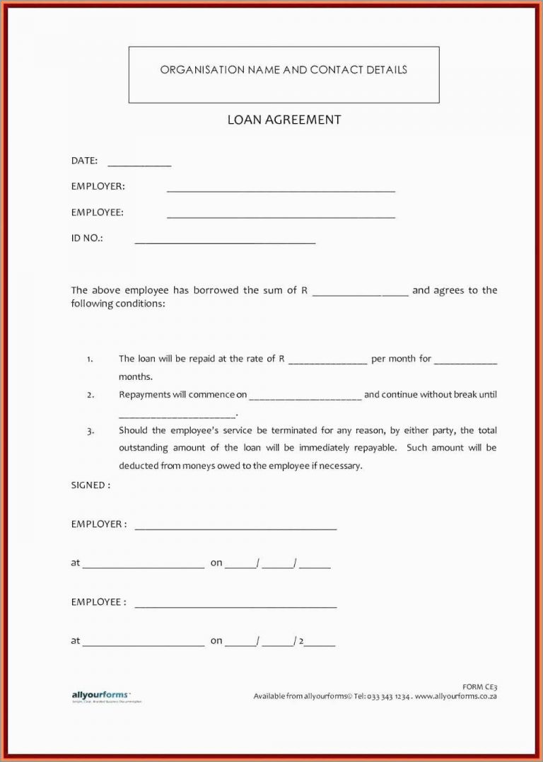 Loan Repayment Template Free Download Of Employee Loan Agreement