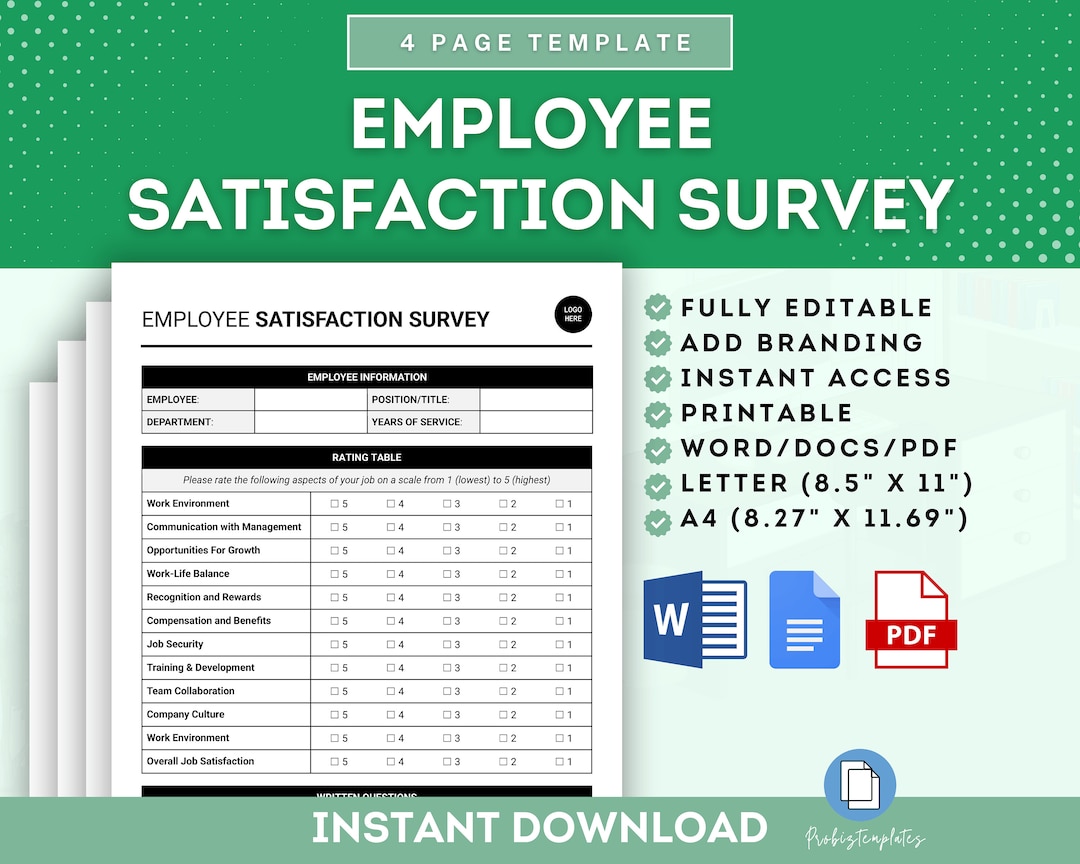 Employee Morale Survey HR Template in Word PDF Google Docs Download