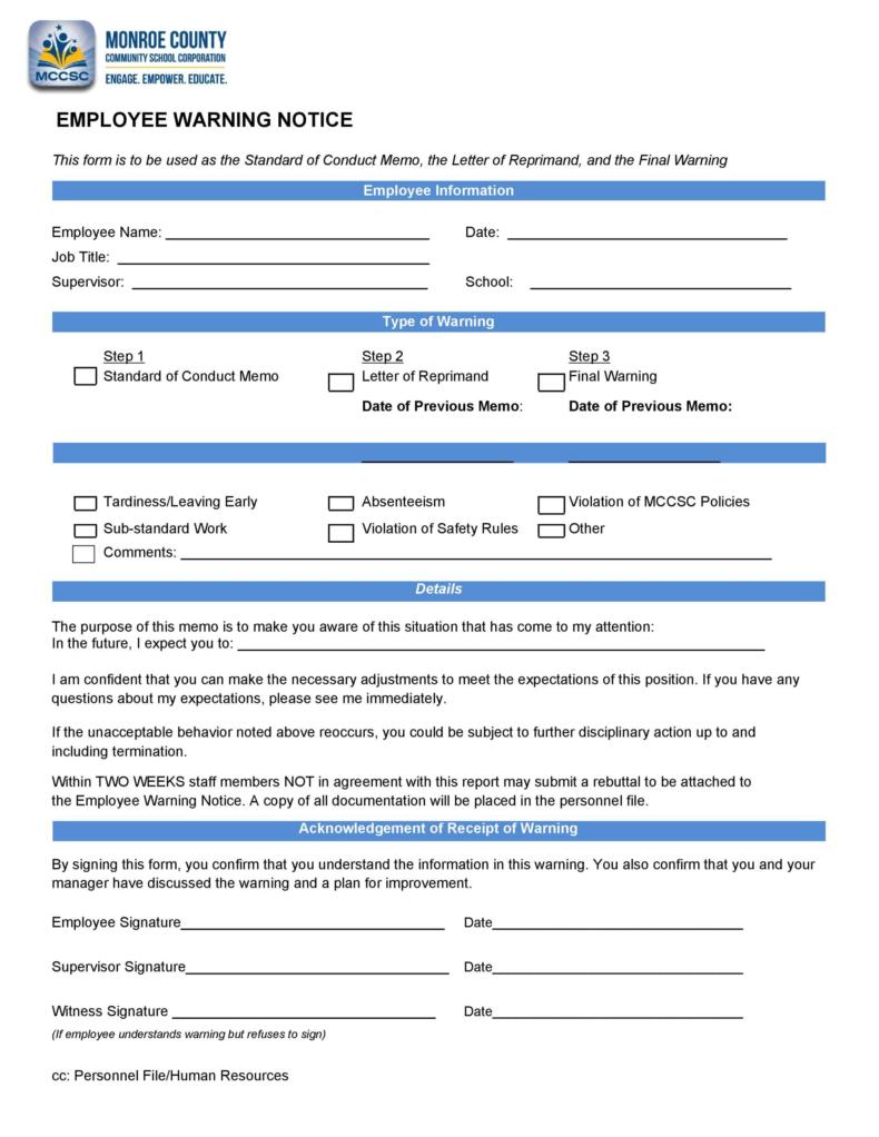 15 Free Employee Warning Notice (Amazing Template Example) Calypso Tree