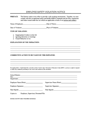 Fillable Online EMPLOYEE SAFETY VIOLATION NOTICE Fax Email Print
