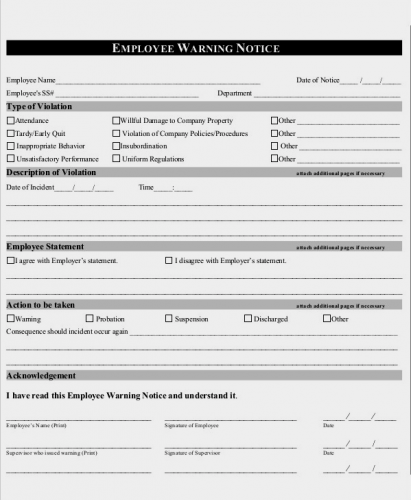 12 Printable Employee Warning Notice Templates Google Docs MS Word