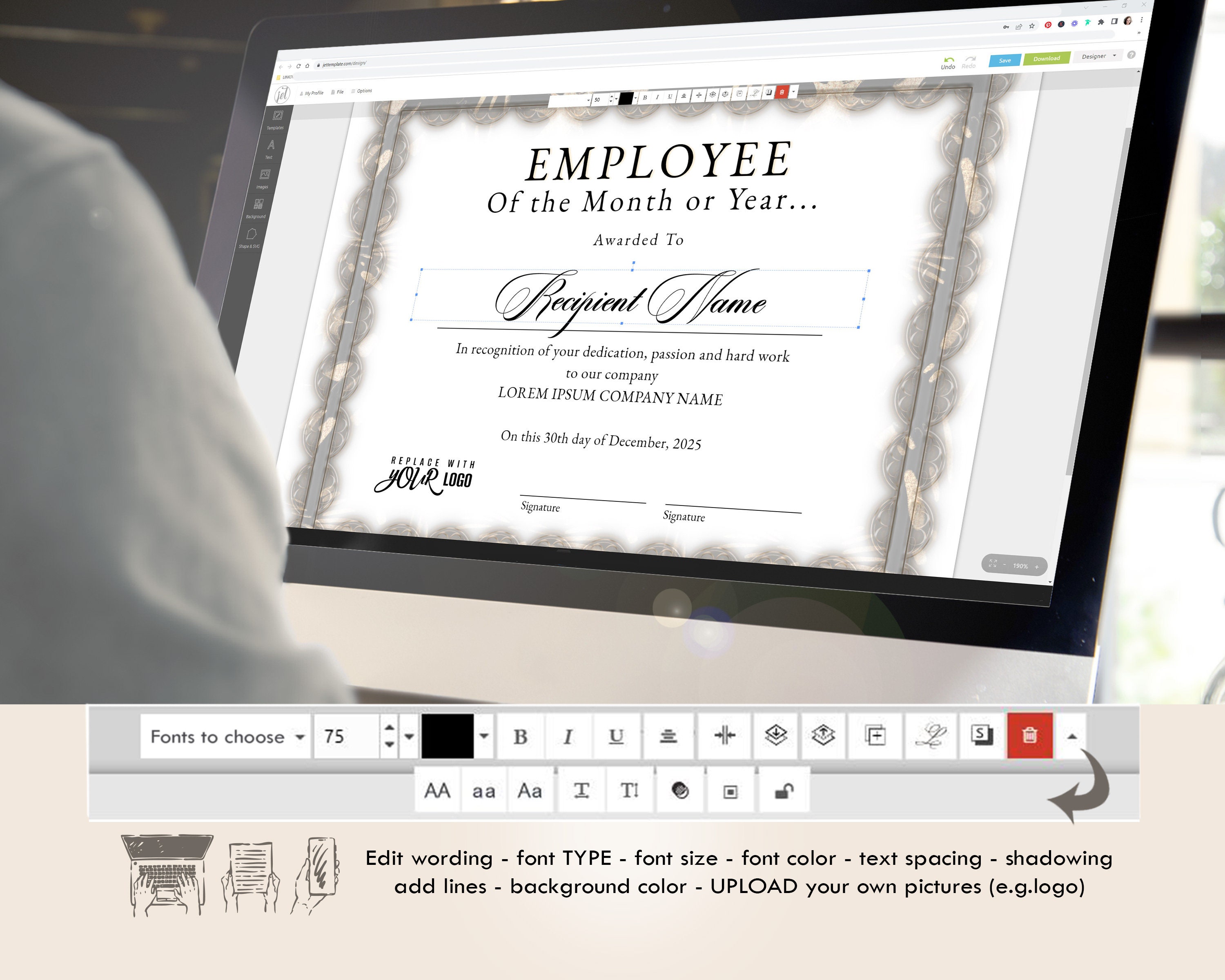Employee of the Month Editable Template Office Certificate Employee