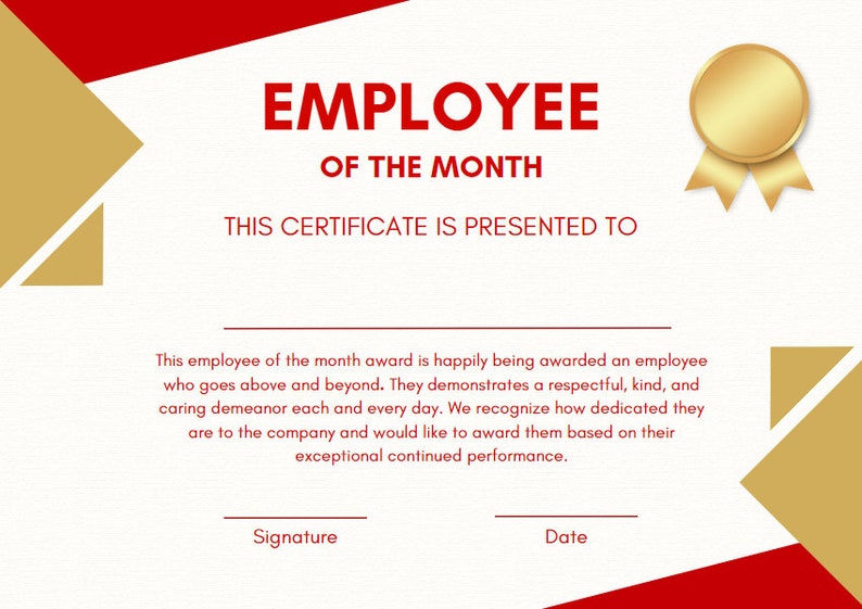 Employee of the Month Template Etsy