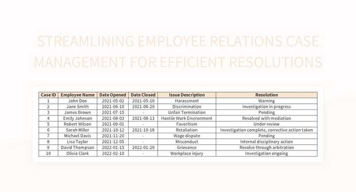 Employee Relations Case Tracker Streamline And Manage Employee Issues