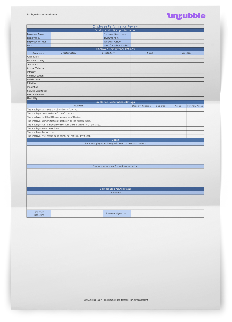 Free Printable Employee Review Templates For Google Sheets And