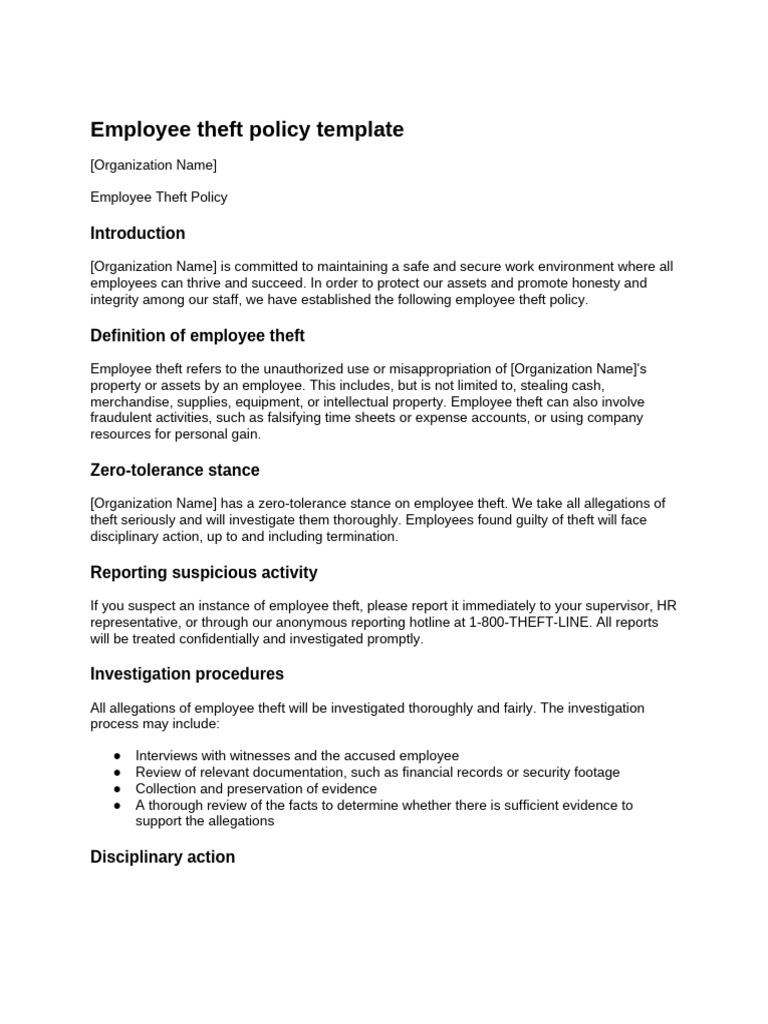 Employee Theft Policy Template