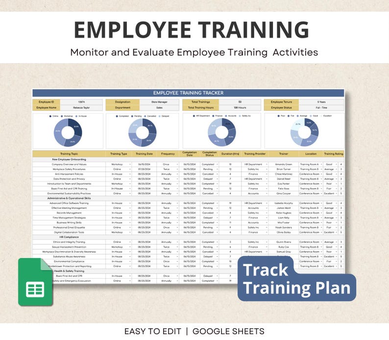 Employee Training Tracker New Hire Training Plan Employee Etsy