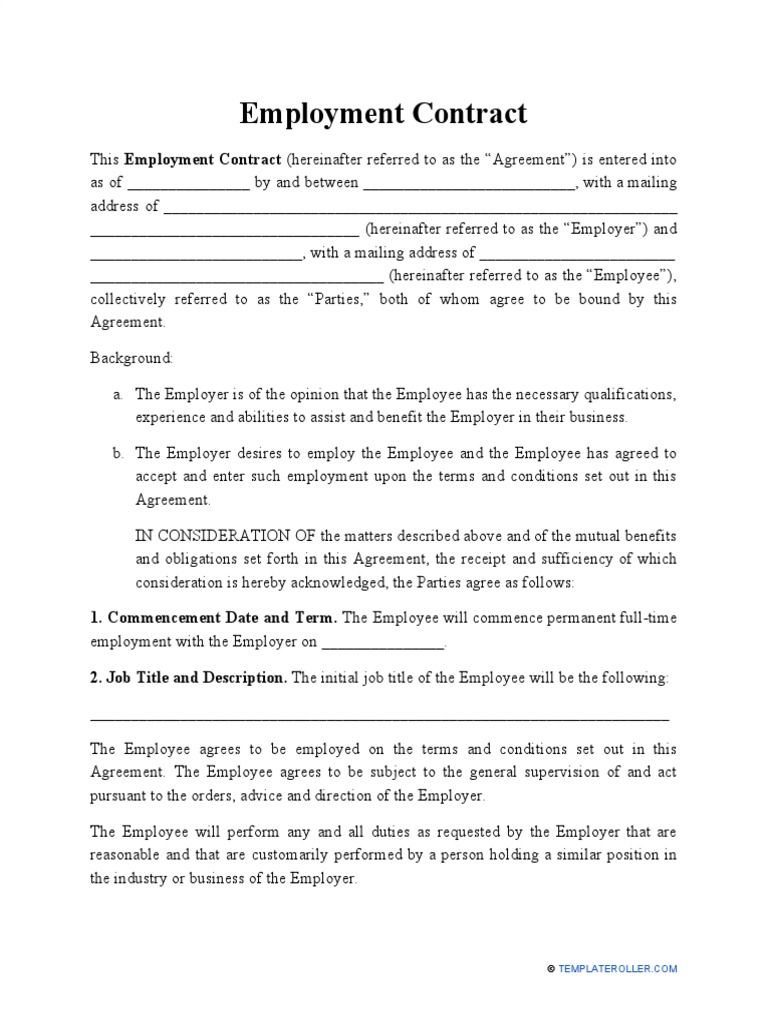 Free Employment Contract Template To Create Online