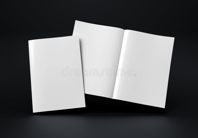 Magazine Cover and Open Magazine Mockup on Black Empty Brochure