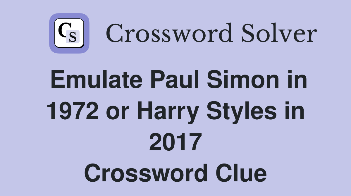 Emulate Paul Simon in 1972 or Harry Styles in 2017 Crossword Clue