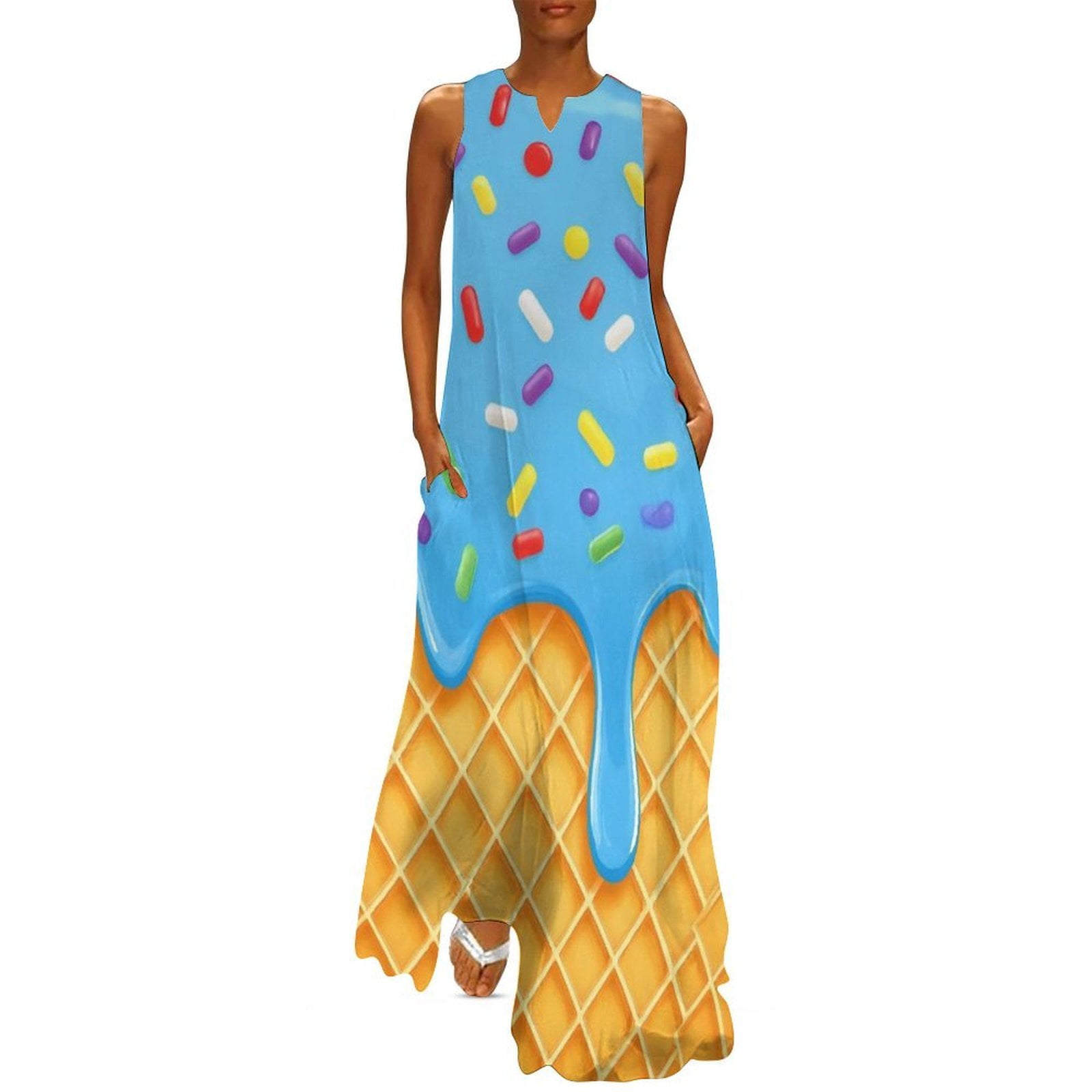 Blue Enamel Ice Cream Cone Long Dress dress women summer dress for