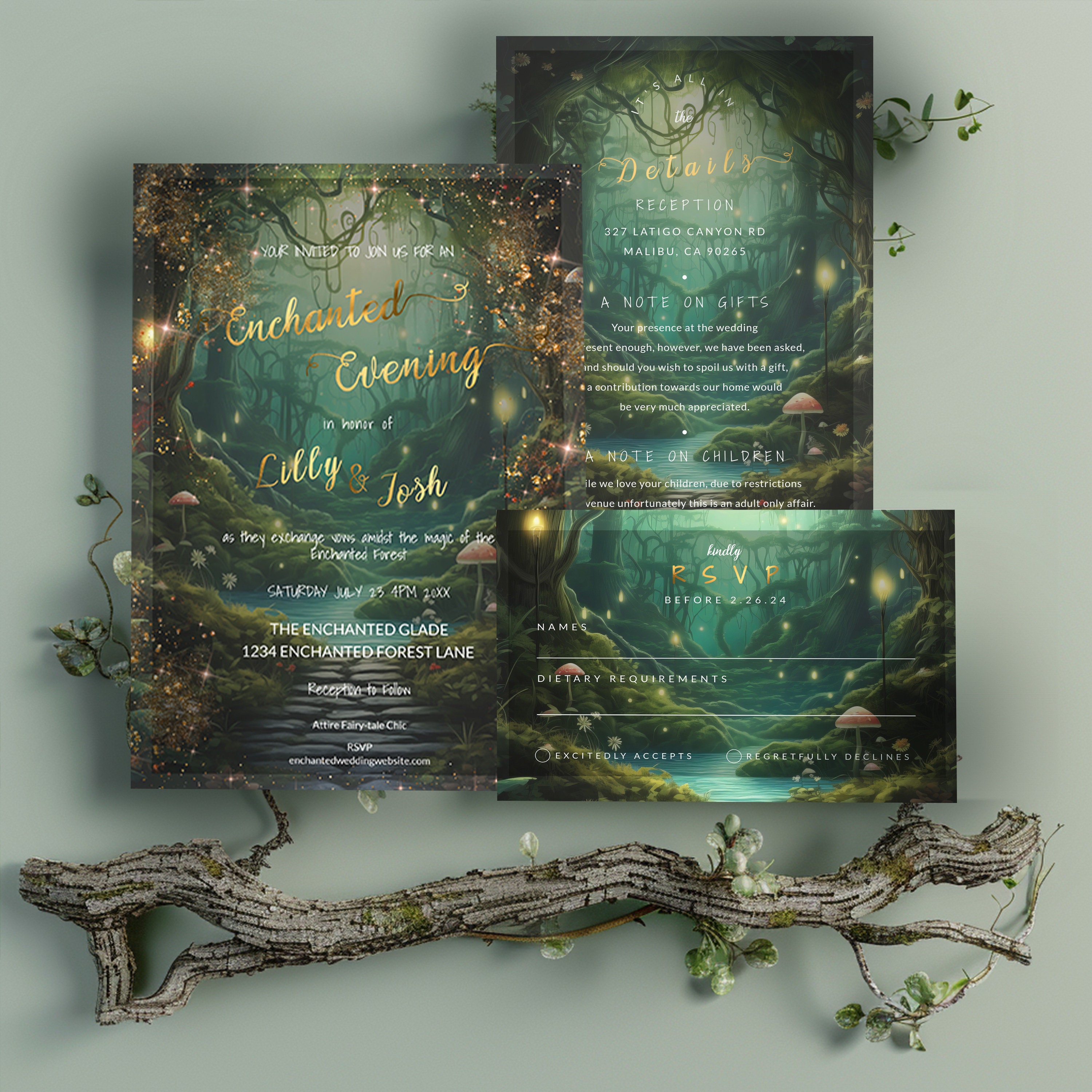 Enchanted Forest Wedding Invitation Suite magic Garden forest Pathway