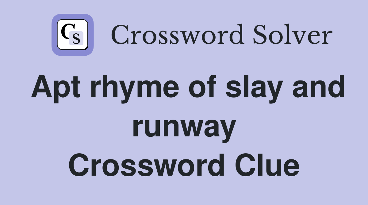 Apt rhyme of slay and runway Crossword Clue Answers Crossword Solver