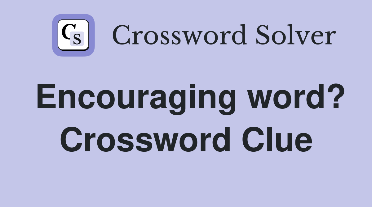 Encouraging word? Crossword Clue Answers Crossword Solver